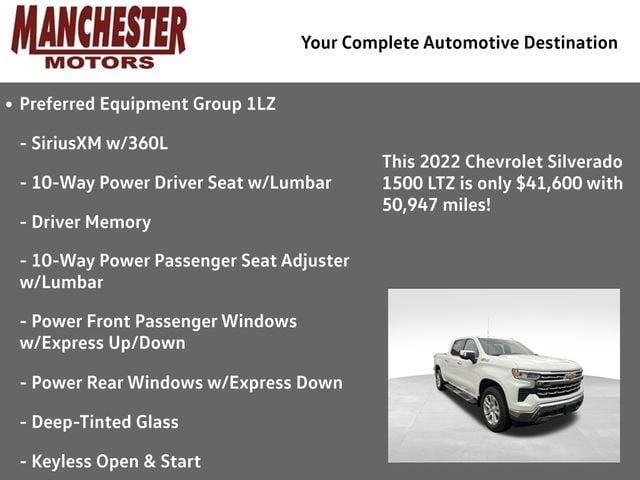 Manchester Motor Company is proud to offer this reliable 2022 Chevrolet Silverado 1500 in Summit White. WE ARE A TOP RATED DEALER BY CARFAX AND CARGURUS FOR 2022! This vehicle has passed our comprehensive inspection and comes with the following features; 4WD 3.0L I6 10-Speed Automatic
