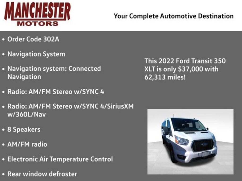 Manchester Motor Company is proud to offer this good-looking 2022 Ford Transit-350 in Oxford White. WE ARE A TOP RATED DEALER BY CARFAX AND CARGURUS FOR 2022! This vehicle has passed our comprehensive inspection and comes with the following features; RWD V6 10-Speed Automatic with Overdrive