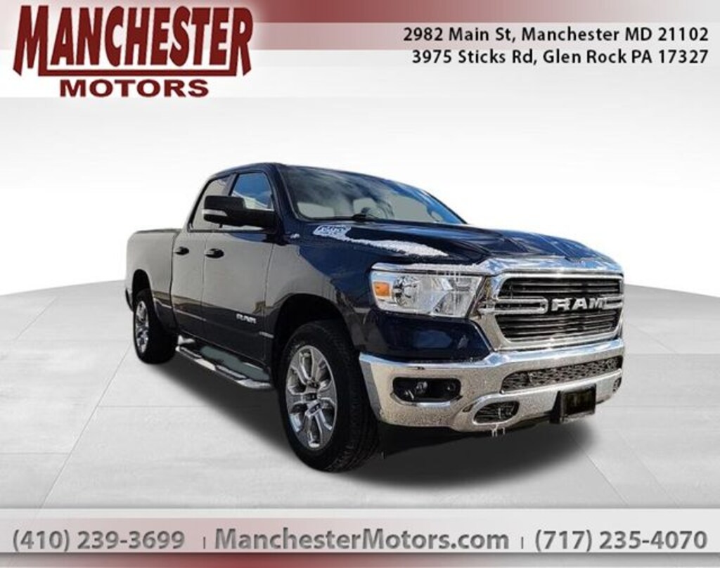 Manchester Motor Company is proud to offer this good-looking 2021 Ram 1500 in Patriot Blue Pearlcoat. WE ARE A TOP RATED DEALER BY CARFAX AND CARGURUS FOR 2022! This vehicle has passed our comprehensive inspection and comes with the following features; 4WD HEMI 5.7L V8 Multi Displacement VVT 8-Speed Automatic