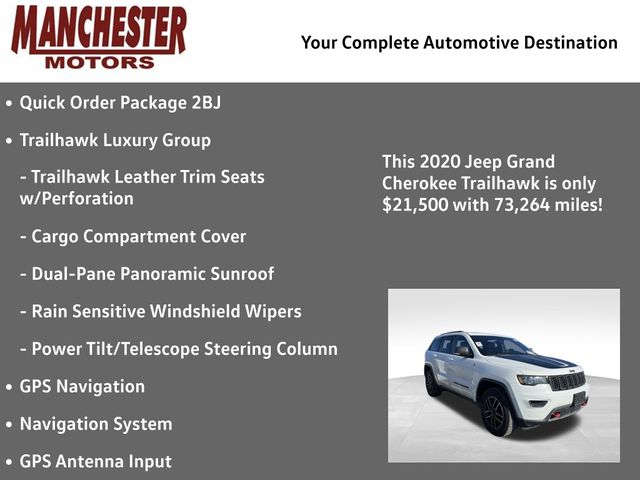 Manchester Motor Company is proud to offer this good-looking 2020 Jeep Grand Cherokee in Bright White Clearcoat. WE ARE A TOP RATED DEALER BY CARFAX AND CARGURUS FOR 2022! This vehicle has passed our comprehensive inspection and comes with the following features; 4WD 3.6L V6 24V VVT 8-Speed Automatic